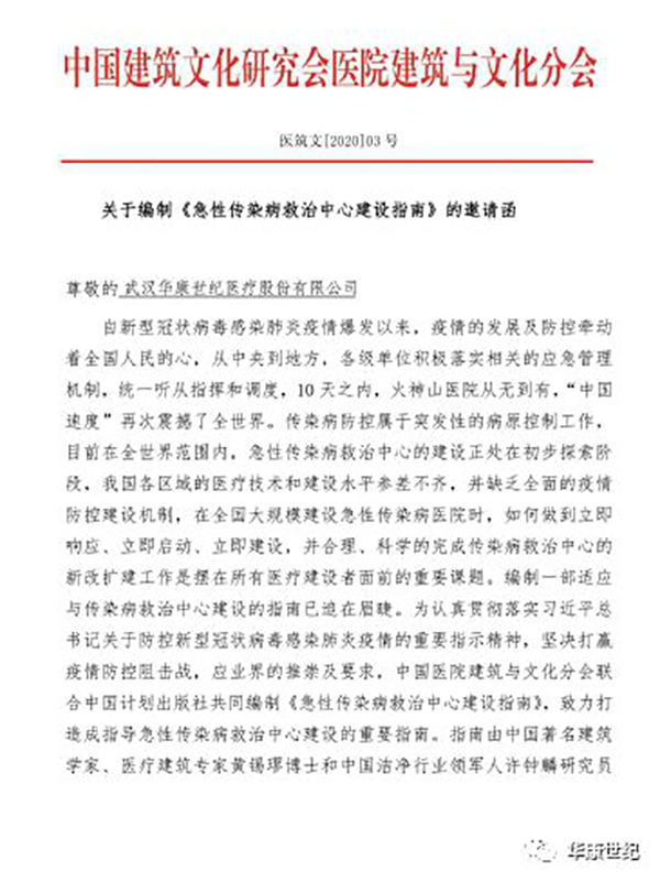 疫情期間,公司應(yīng)行業(yè)協(xié)會(huì)等單位邀請(qǐng),以副主編、參編委員的名義參編《急性傳染病救治中心建設(shè)指南》、《傳染病醫(yī)院建設(shè)指南》和《傳染病醫(yī)院建設(shè)需求資料匯編》、《綠色智慧醫(yī)院建設(shè)和改造技術(shù)應(yīng)用手冊(cè)》等。并無(wú)償向社會(huì)分享負(fù)壓病房、負(fù)壓ICU等建設(shè)經(jīng)驗(yàn)。
