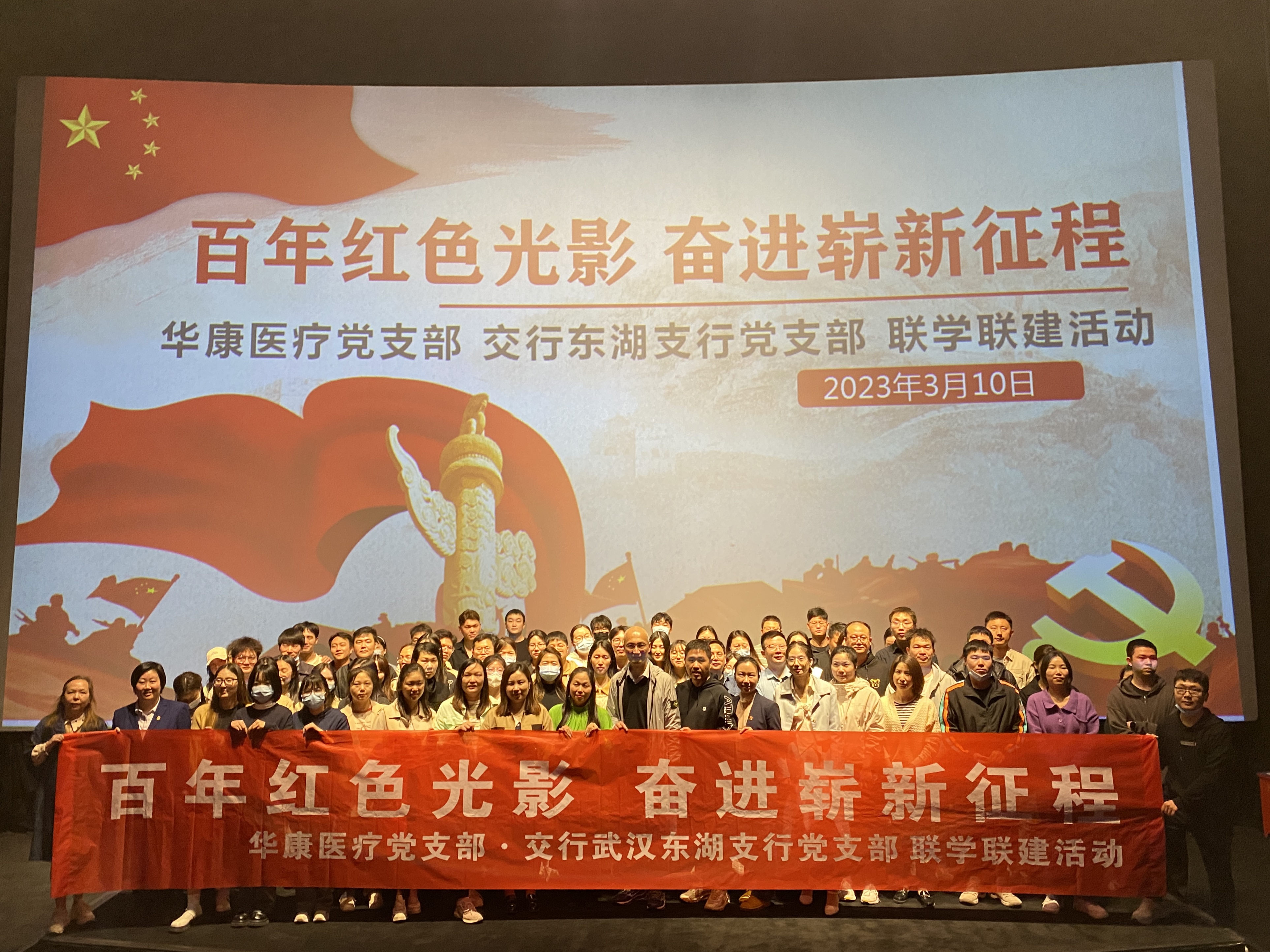 為貫徹學(xué)習(xí)黨的二十大精神,深入落實(shí)新時(shí)代黨的建設(shè)工作要求,2023年3月10日19:00,華康醫(yī)療黨支部與交通銀行武漢東湖支行黨支部開展主題為“百年紅色光影·奮進(jìn)嶄新征程”的聯(lián)學(xué)聯(lián)建活動(dòng),活動(dòng)以集體觀影的方式拉開序幕,來自雙方的黨員干部群眾近100人參與此次活動(dòng)。